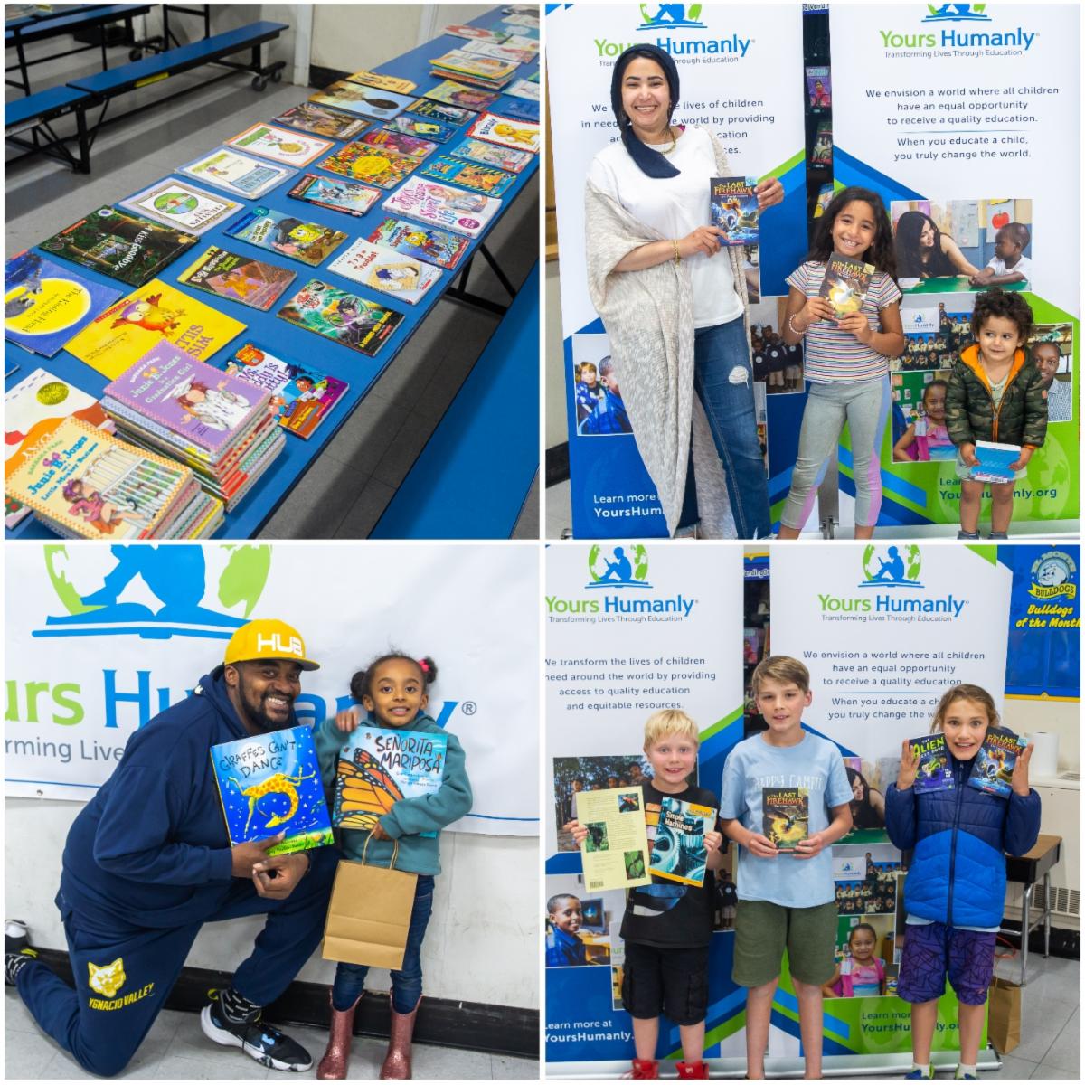In March 2023, the City of Concord (CA) generously granted Yours Humanly $213,000 to go toward a comprehensive Family Literacy Night project (Fall 2023–Spring 2025) that will benefit more than 4,000 students in ten Concord elementary schools. To promote early literacy and family engagement, we’re using the funds to provide books for students and classrooms in need, and hosting two on-campus Family Literacy nights per school. Spring 2024, we hosted the second of two literacy nights at El Monte, Wren Avenue, and Sun Terrace. We also hosted the first of two literacy nights at Holbrook Language Academy and Westwood Elementary. Collectively, the five events and book distributions benefited 1800 students.