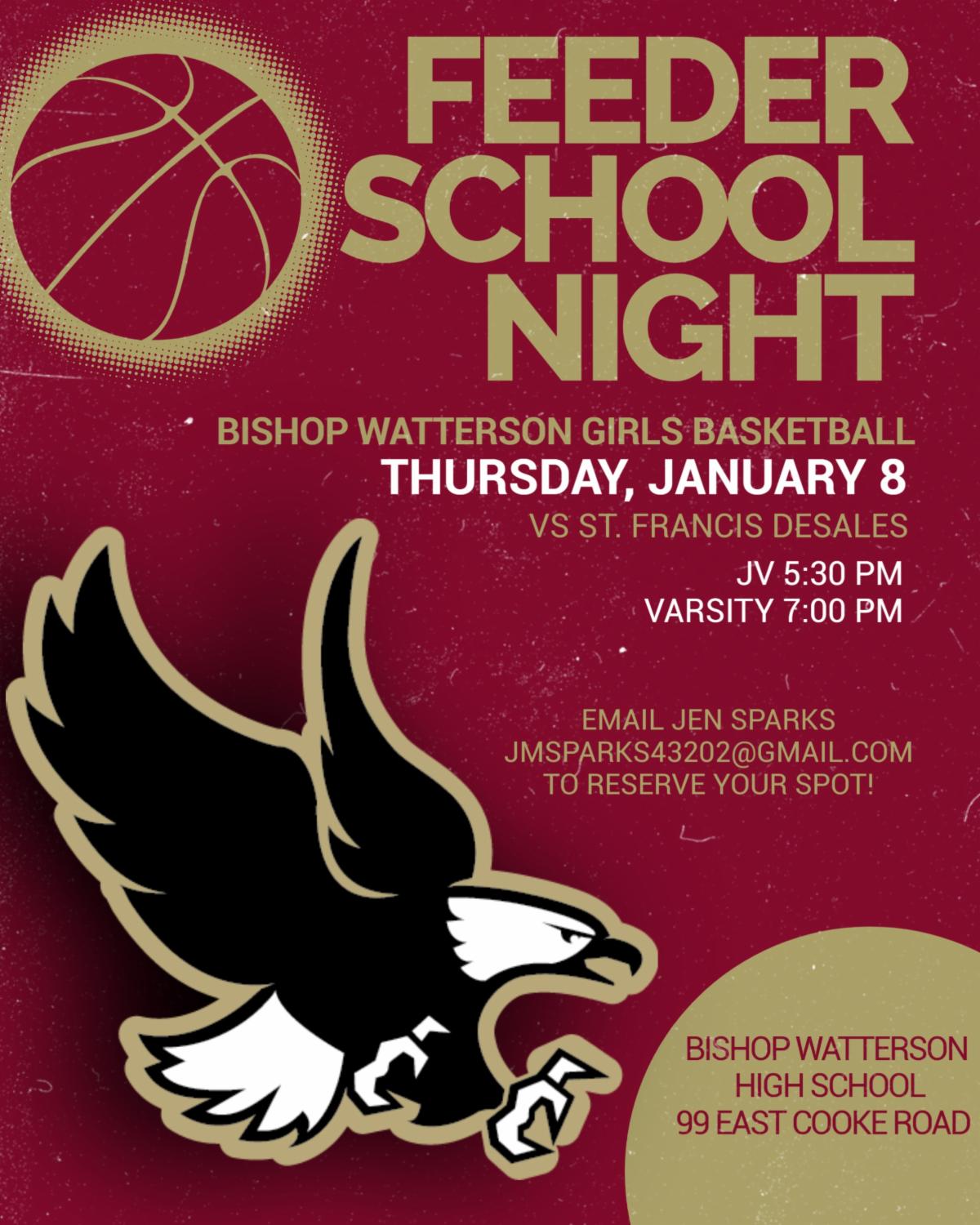 Bishop Watterson High School is hosting a girls basketball feeder school night on Thursday, January 8.