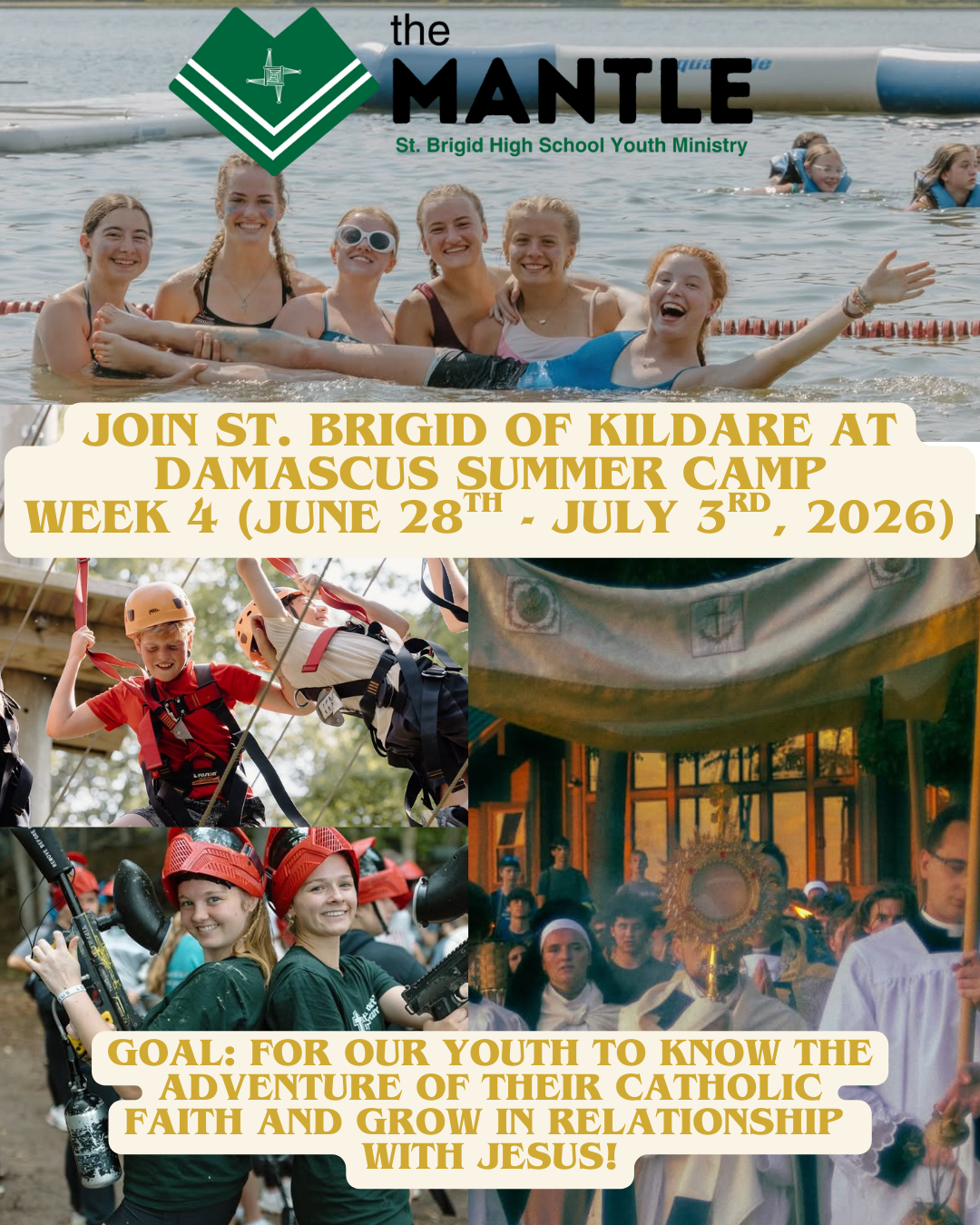 We are excited to announce that St. Brigid has 200 spots reserved for Damascus Summer Camp next summer! (If you have not seen it already, please read Fr. Black's letter to you all about the joy that this is :)). This is for all kids entering into 6th-12th grade the fall of 2026.
