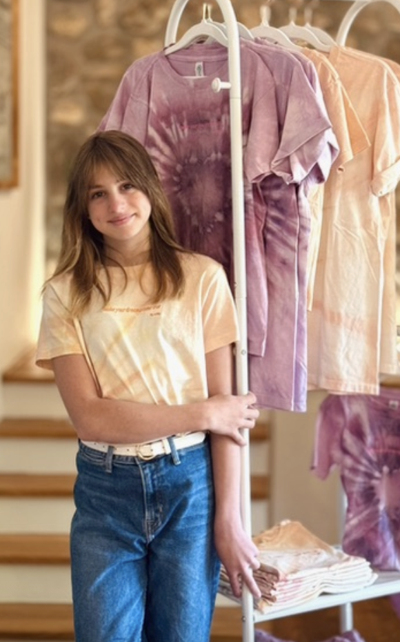 Maggie makes own plant-based pigments and tie-dyes her tee shirts before having them embroidered with her favorite saying: Make Your Dreams Come True. And, Maggie has big dreams for herself. She wants to become a surgeon, to someday visit space, and she wants to pursue a degree at attend Yale University. Maggie recently donated a portion of her proceeds to support the Women & Girls Fund.