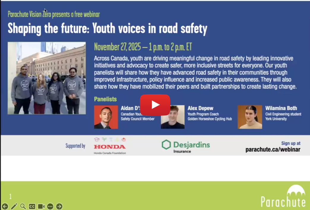 La version française du bulletin suit la version anglaise | | Word on the Street Vol. 28 | | Welcome to Vol. 28 of Word on the Street, our e-newsletter highlighting practical, evidence-based resources for Parachute’s Vision Zero network to educate, inform and inspire those who are interested in road safety. | | |