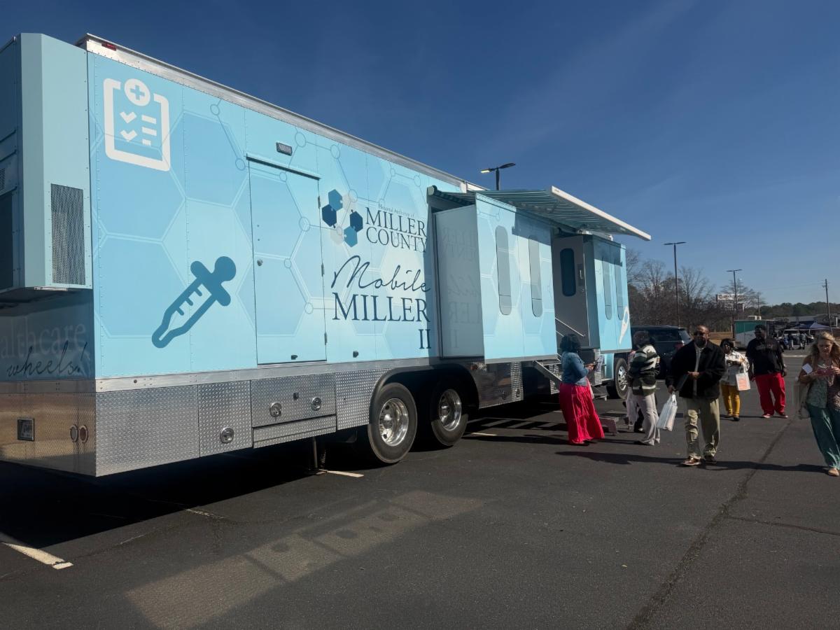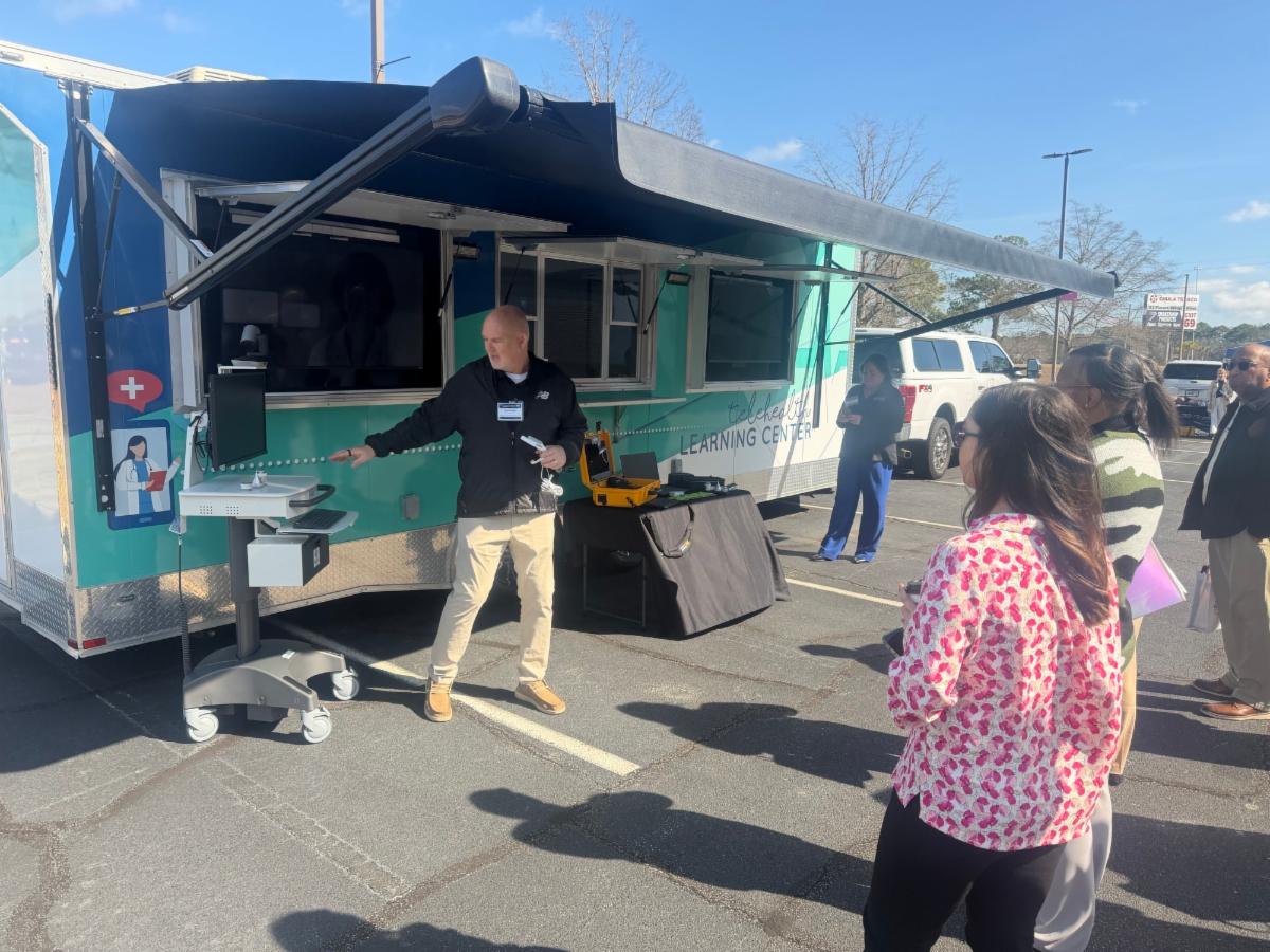Mobile units stationed in the parking lot offered hands-on demonstrations, including the Phoebe Putney Health System Simulation Mobile Center, the Miller County Hospital Mobile Clinic, and the Southeastern Telehealth Resource Mobile Learning Center. These interactive exhibits showcased innovative tools expanding healthcare access and training throughout rural communities.