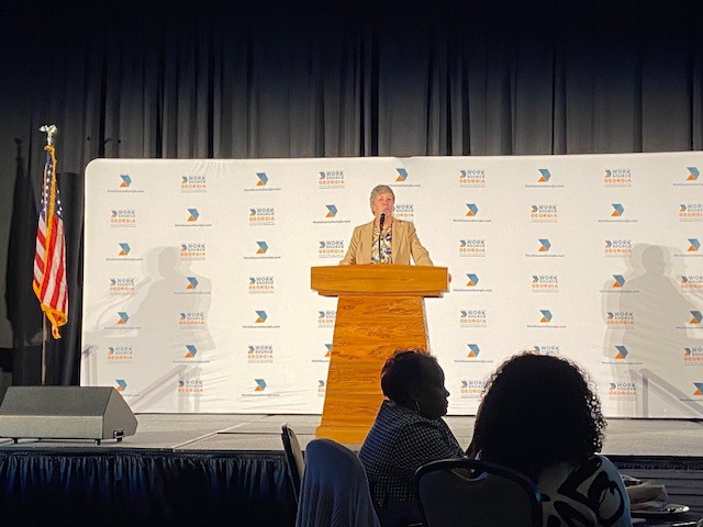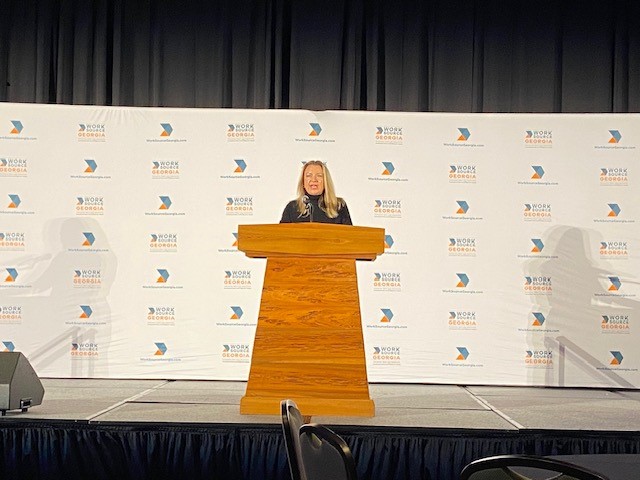 The conference opened with welcoming remarks from Karen Kirchler, Deputy Commissioner of Workforce Development for WorkSource Georgia, who introduced the keynote speaker, Stuart Countess, President and CEO of Kia Georgia and Chairman of the State Workforce Development Board. His remarks reinforced the importance of strong partnerships and forward-thinking leadership in shaping Georgia’s workforce future.