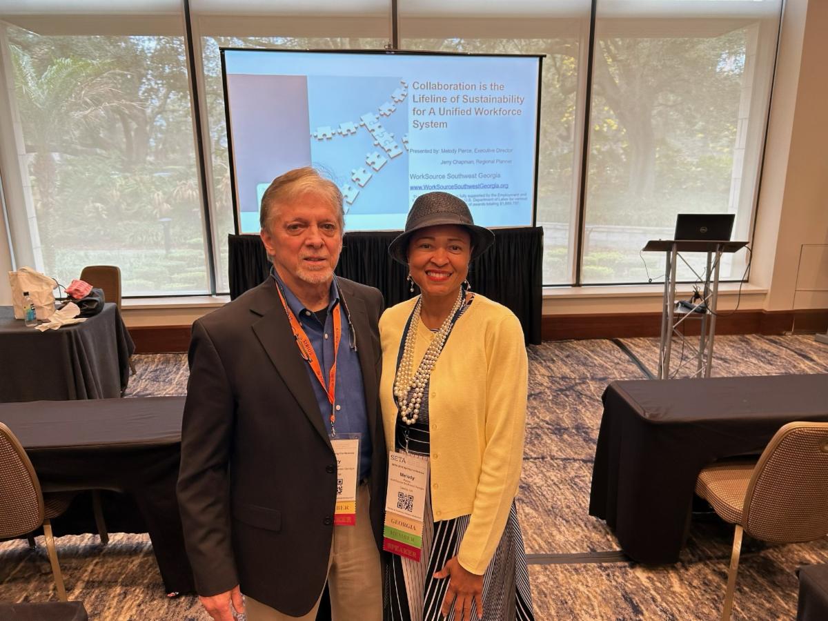 Representing WorkSource Southwest Georgia, Executive Director Melody Pierce and Regional Planner Jerry Chapman attended the conference and led a featured session titled, “Collaboration Is the Lifeline of Sustainability for a Unified Workforce System.” Their presentation emphasized the importance of cross-agency alignment, strong community partnerships, and shared accountability in building a resilient and sustainable workforce ecosystem.