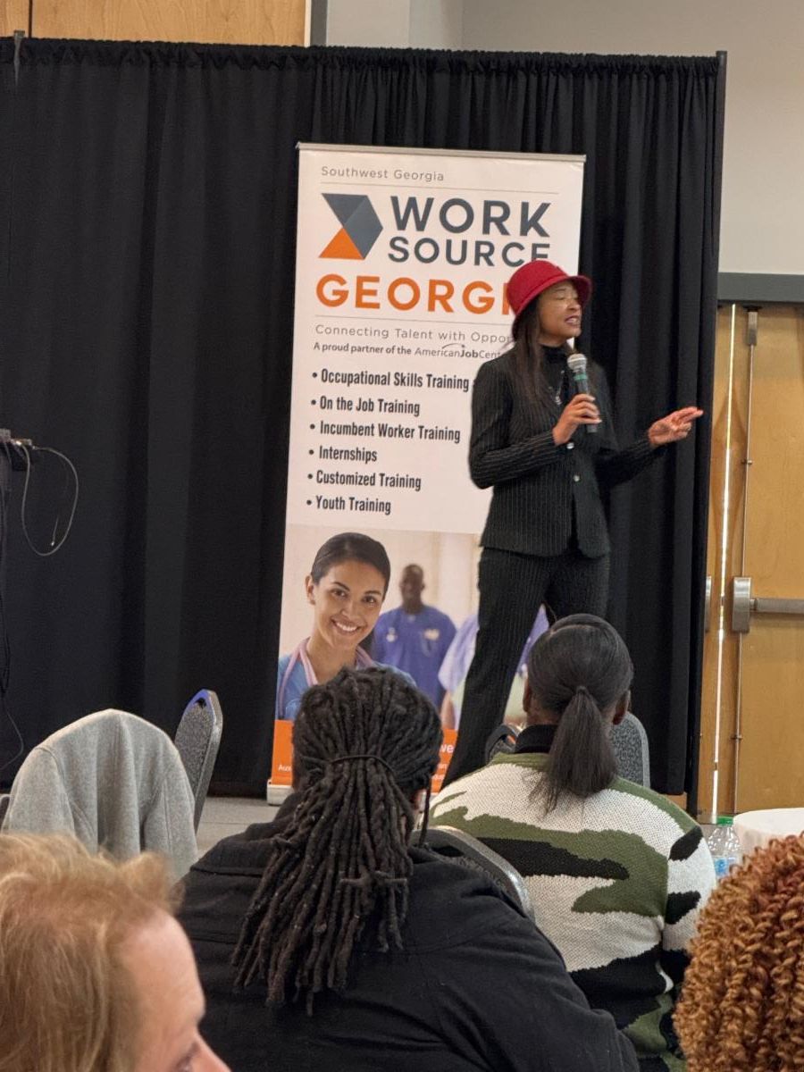 WorkSource Southwest Georgia Executive Director Melody Pierce led an engaging soft skills activity, challenging students to think critically about communication, teamwork, and workplace expectations. Her session reinforced the importance of attitude, accountability, and adaptability in today’s job market.