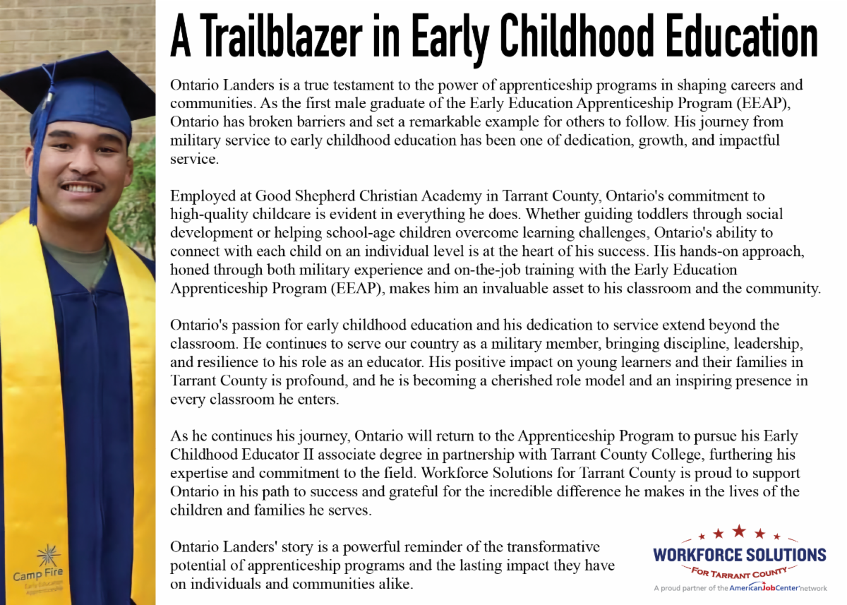 As I reflect on my time here, I am thankful for the relationships we’ve built, the milestones we achieved and the lives we have impacted together. It has been a privilege to work alongside such a passionate and committed team, as well as our elected officials, Board Members, community partners, employers and job seekers. Your dedication to improving the lives of others has always inspired me, and I am confident that the great work we've accomplished will continue to evolve and make a lasting difference in Tarrant County.