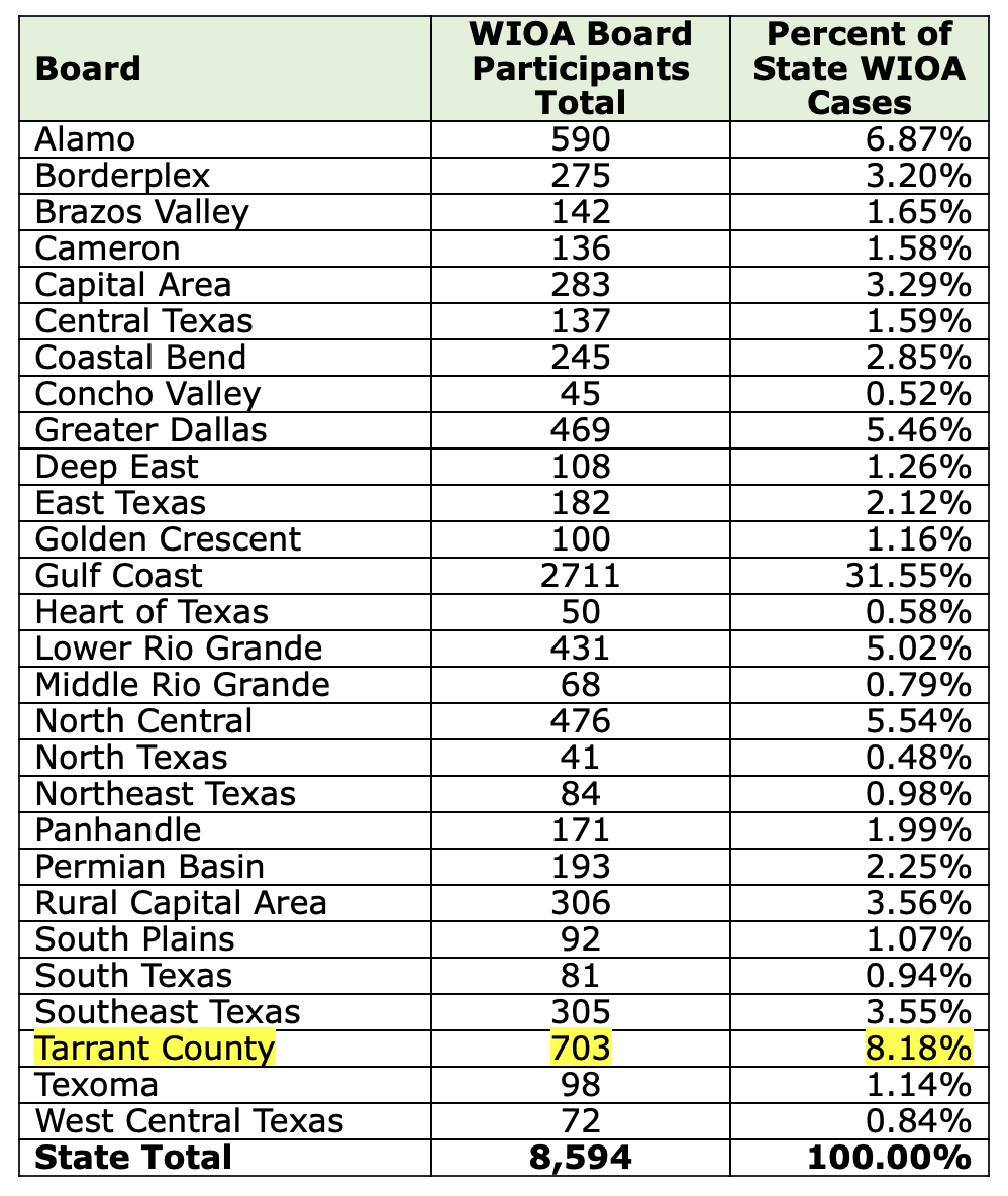 We are excited to share that in a recent update share by the Texas Workforce Commission with the 28 local workforce boards we are second in the state (behind Gulf Coast) serving the most job seekers. Our team has been working hard to serve those in Tarrant County! | |