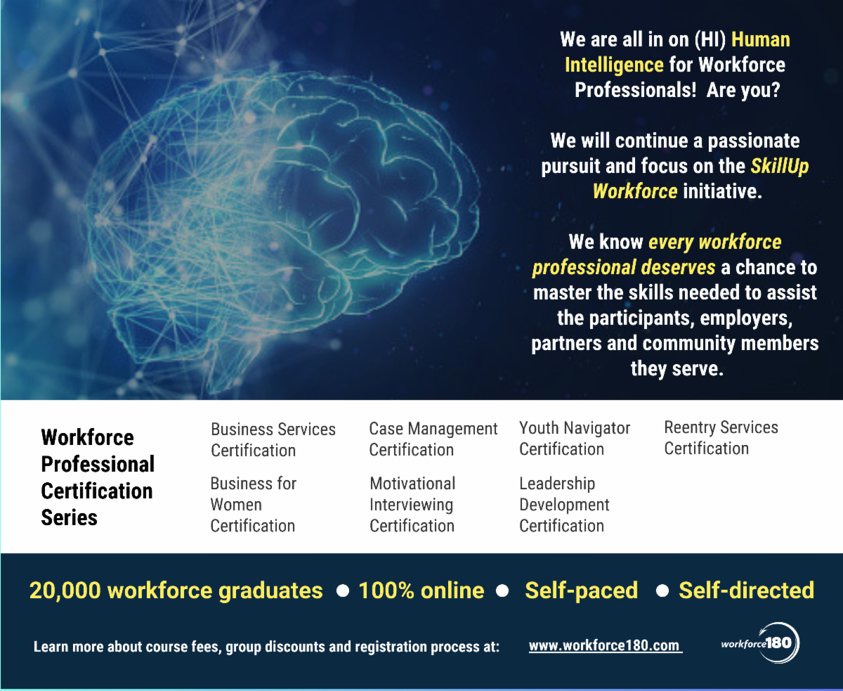 "It's a challenging, yet opportunistic time in workforce development. We believe upskilling our frontline workforce professionals is a key part of the solution process. Since 2014, we've dedicated our organization to create relevant content, in workforce language, to assist in achieving better outcomes, nationwide."