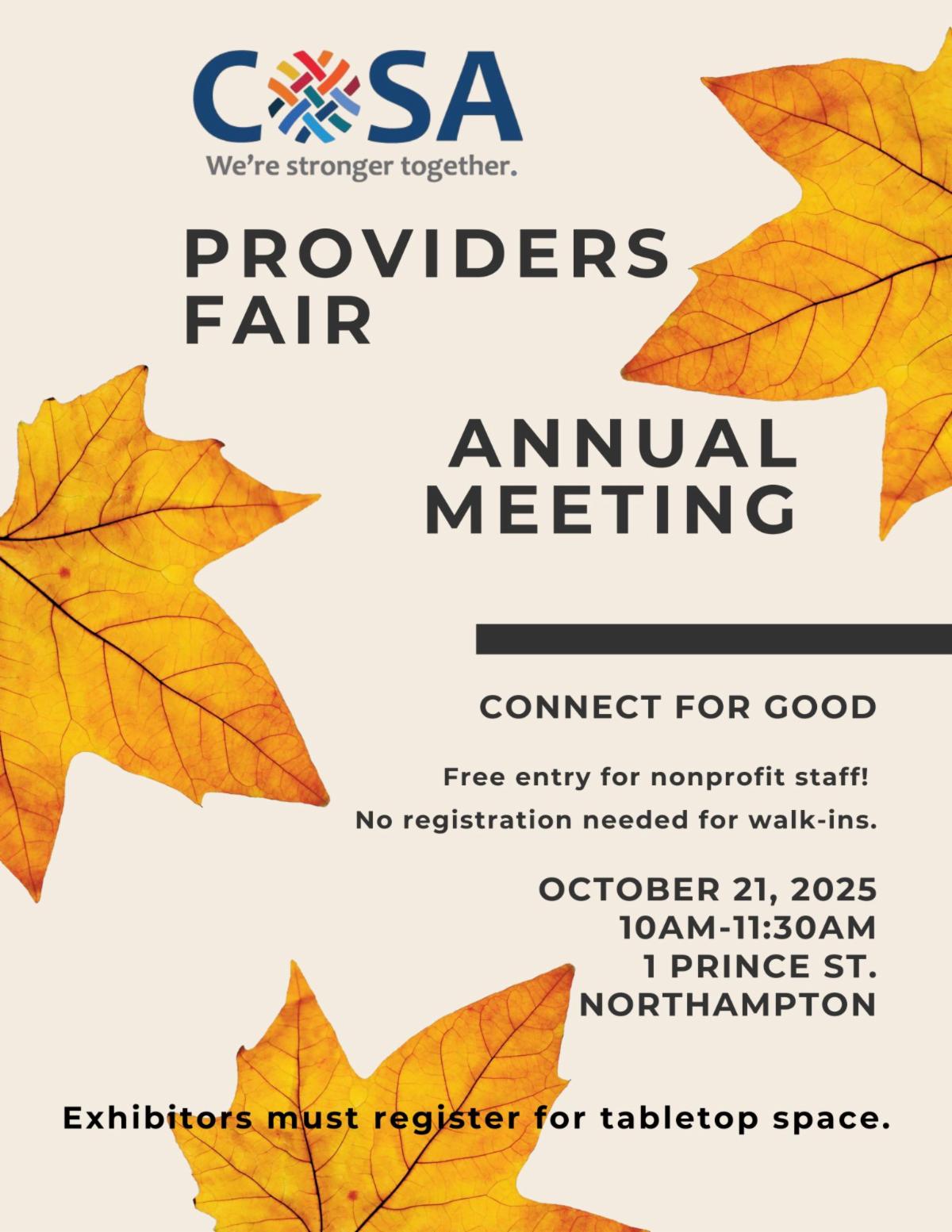 Oct 21: COSA Providers Fair & Annual Meeting 10am-11:30am