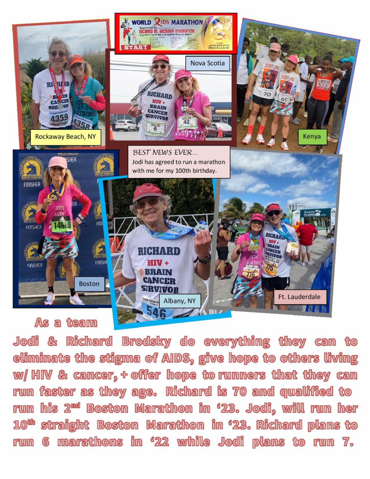 I may not be a brain surgeon or rocket scientist, but one thing I did figure out: if you can help others you feel good and can run more marathons. I just turned 70 and will be running 5 marathons this year and I qualified to run my 2nd Boston Marathon in 2023. Please consider partnering with my Foundation as a runner, sponsor or volunteer. I run marathons to give hope to people living with HIV and brain cancer that living an upbeat lifestyle will help you beat HIV and brain cancer.