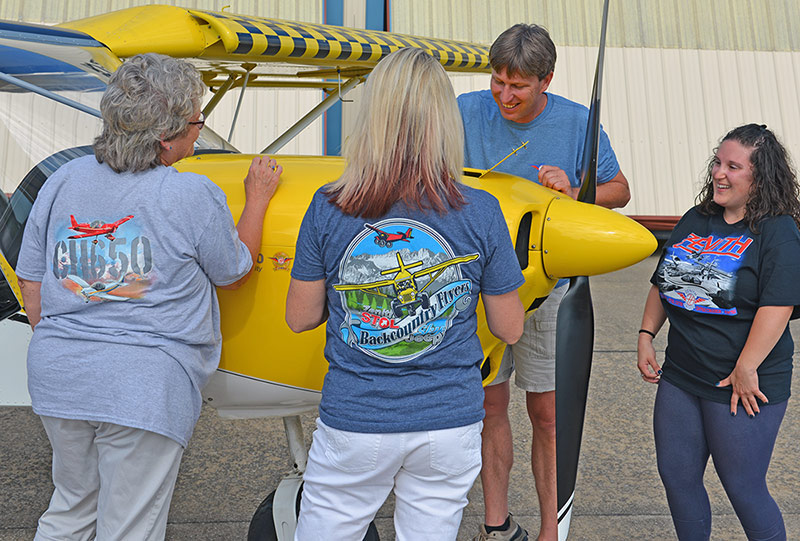 Above: Joyce, Patty, Roger and Kayla model some of the new Zenith Aircraft shirts from EAA