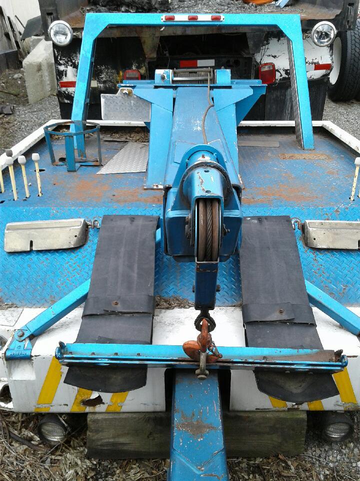1997 Century 411 wrecker body. Features include a steel body, one winch and tow sling.
