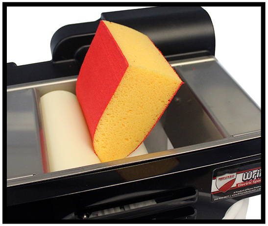 The WrinGo sponge machine from RTC is the easiest way to save your hands from fatigue while having a consistently damp sponge for grout cleaning. The squirrel cage design agitates the sediment from your sponges before sending them through the wringer. The solid nylon rollers extract the maximum amount of water leaving you with a damp sponge that eliminates pigment washout.