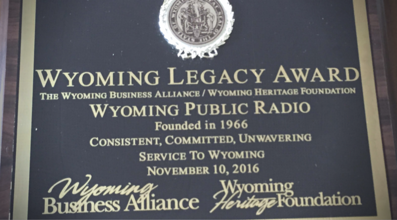 2016 Wyoming Legacy Award, which recognized institutional advancements for a better Wyoming. The award was presented at the Wyoming Governor’s Business Forum in Cheyenne by Paul Radakovich, Wyoming Business Alliance/Wyoming Heritage Foundation Chair, and UW President Laurie Nichols. It honored 50 years of service by Wyoming Public Radio to the State of Wyoming.