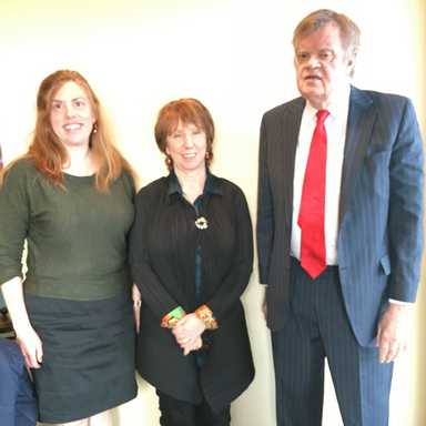 Photo: Dr. Stephanie Andersen of UW and Baroness Katherine Ashton with Garrison Keillor