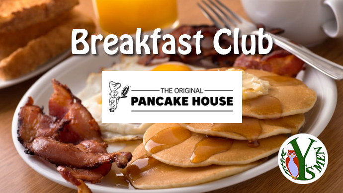 The Y's Men Breakfast Club meets next month on Tuesday, April 8, at 8:00 am in The Original Pancake House, 43 Main Street, Westport. The restaurant is on the 2nd floor in the former Acqua Restaurant off Parker Harding Plaza. For those who would prefer it, there is an elevator available. A few tickets are still left. You must have a ticket to get in. No payments will be taken at the door.