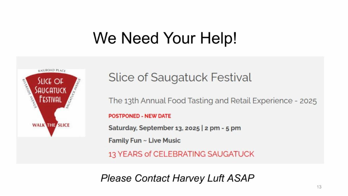 Thursday’s meeting is scheduled for September 18 at 10:00 am at the Saugatuck Congregational Church.