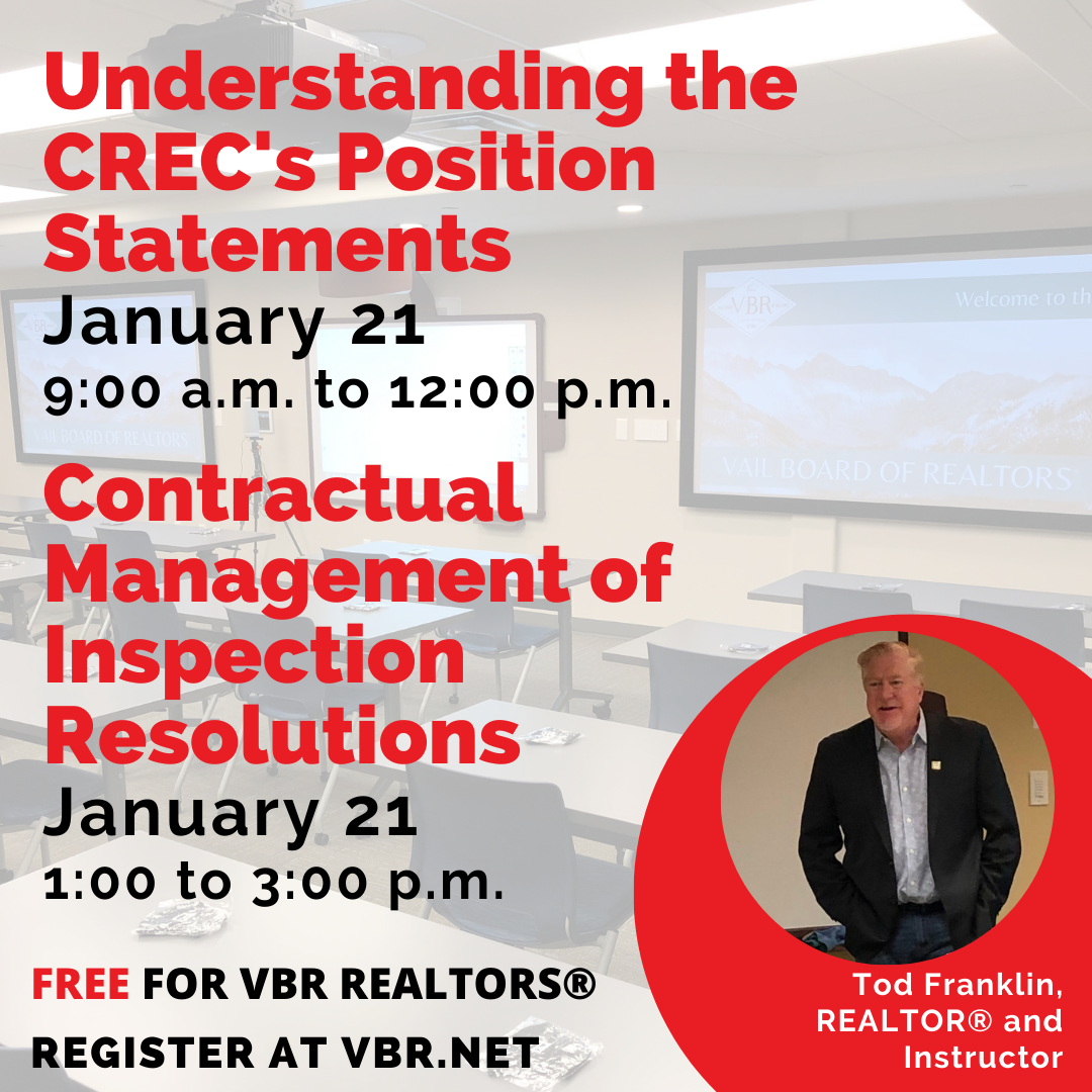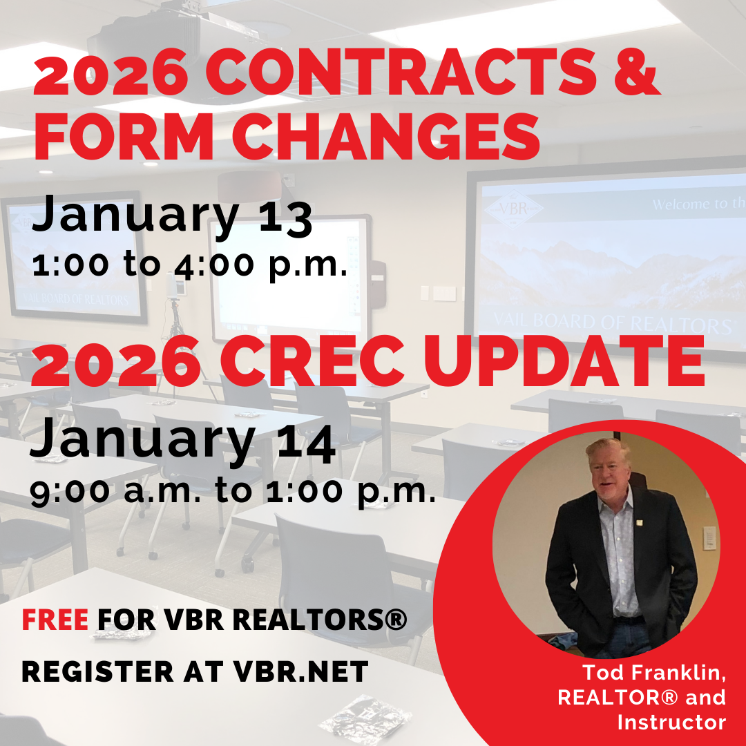 Increase your knowledge in the real estate industry and become a local expert! The Vail Pro Designation is an educational program open to ALL VBR Realtor® and Affiliate members!