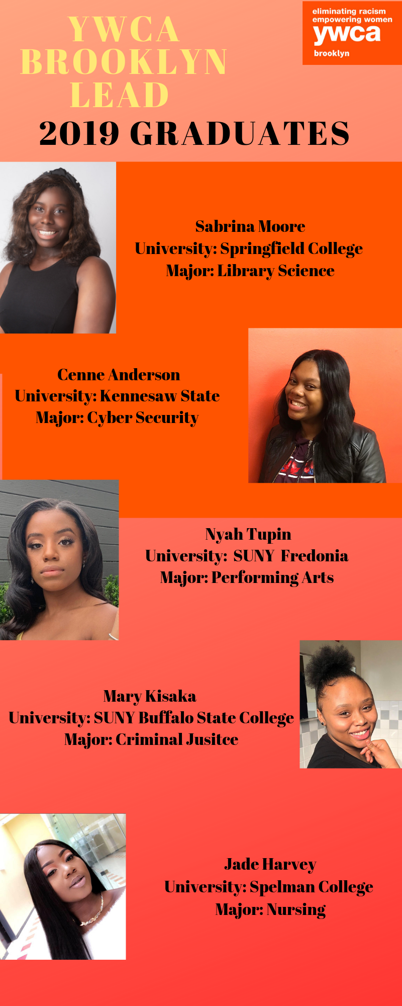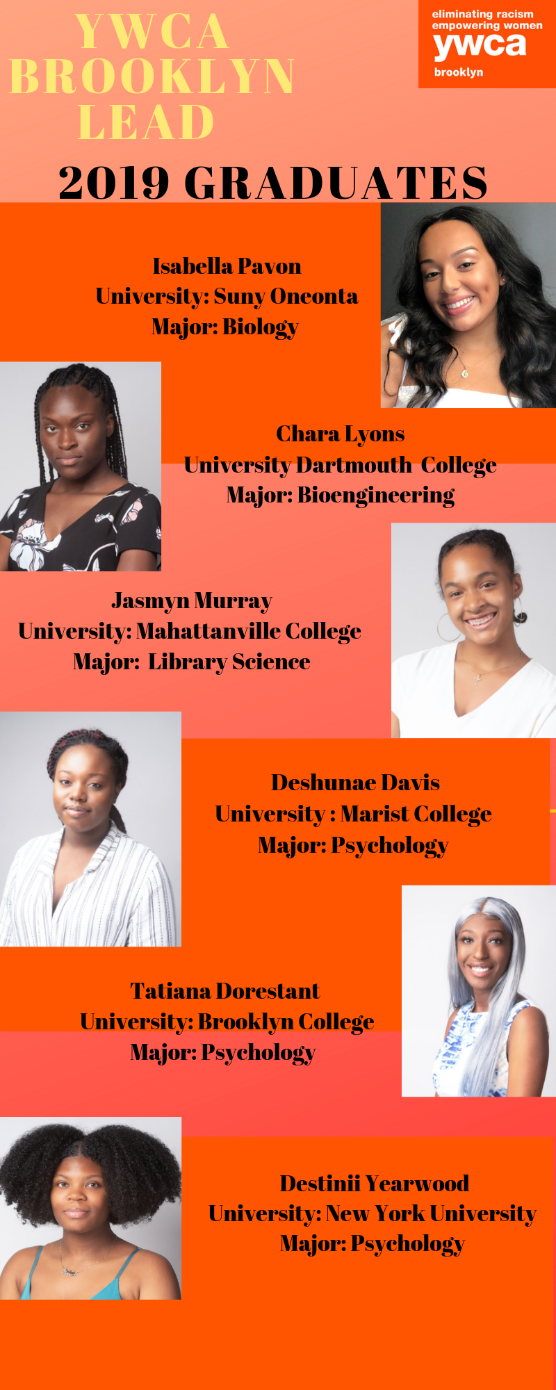 joined the YWCA Brooklyn LEAD Program in 2014, graduated salutatorian of her high school class and received a full scholarship to the Sop