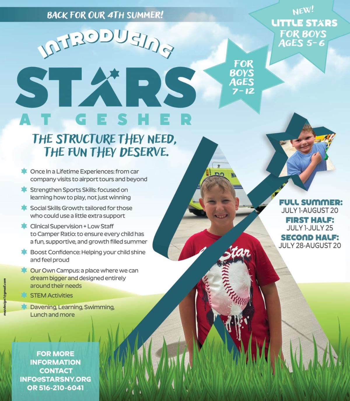 Introducing "Stars at Gesher" for boys ages 7-12; and "Little Stars" for boys ages 5-6. This specialty daycamp is here to help boys with high functioning autism or other similar challenges have an amazing summer!