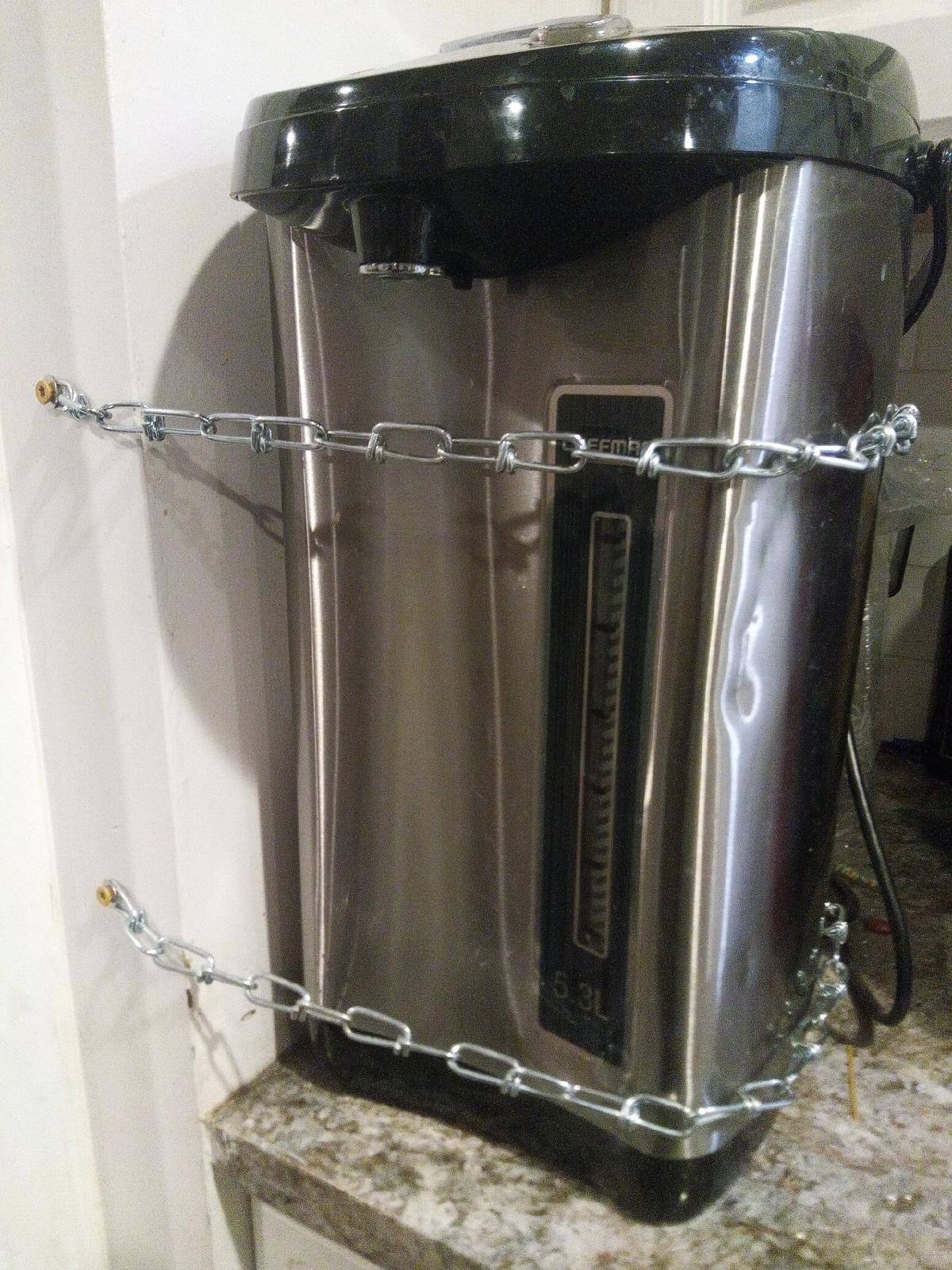 Some children are capable of getting their hands on anything in sight. This can be dangerous, especially in the kitchen. For an urn, you can put chains around it while still leaving the top open for water.