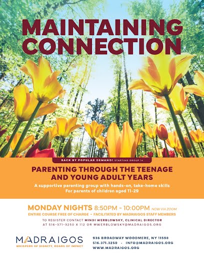 To register contact Mindy Werblowsky, Clinical Director at Madraigos at 516-371-3250 ext 112 or mwerblowsky@madraigos.org