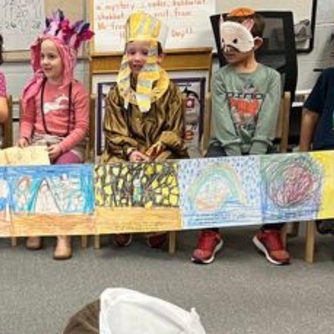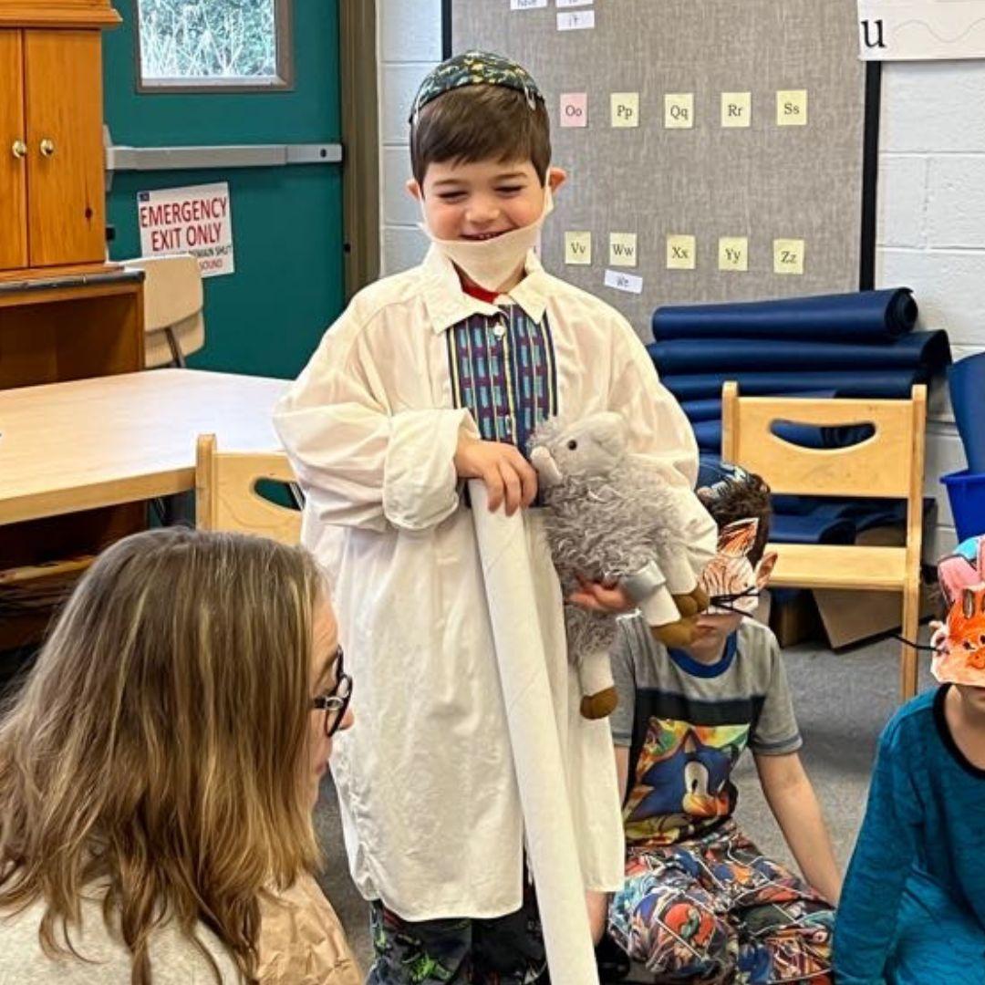 This week marked the completion of the first book of the Torah, Bereishit. For our Kindergarten students that meant a siyum celebrating this moment in the yearly cycle of Torah readings, and also their own artistic representations of each parsha in Bereishit. Students have been working each week on their favorite stories and characters from the parsha, culminating in this week’s siyum where they displayed their art in their completed Torah scrolls and dressed up as their favorite characters.