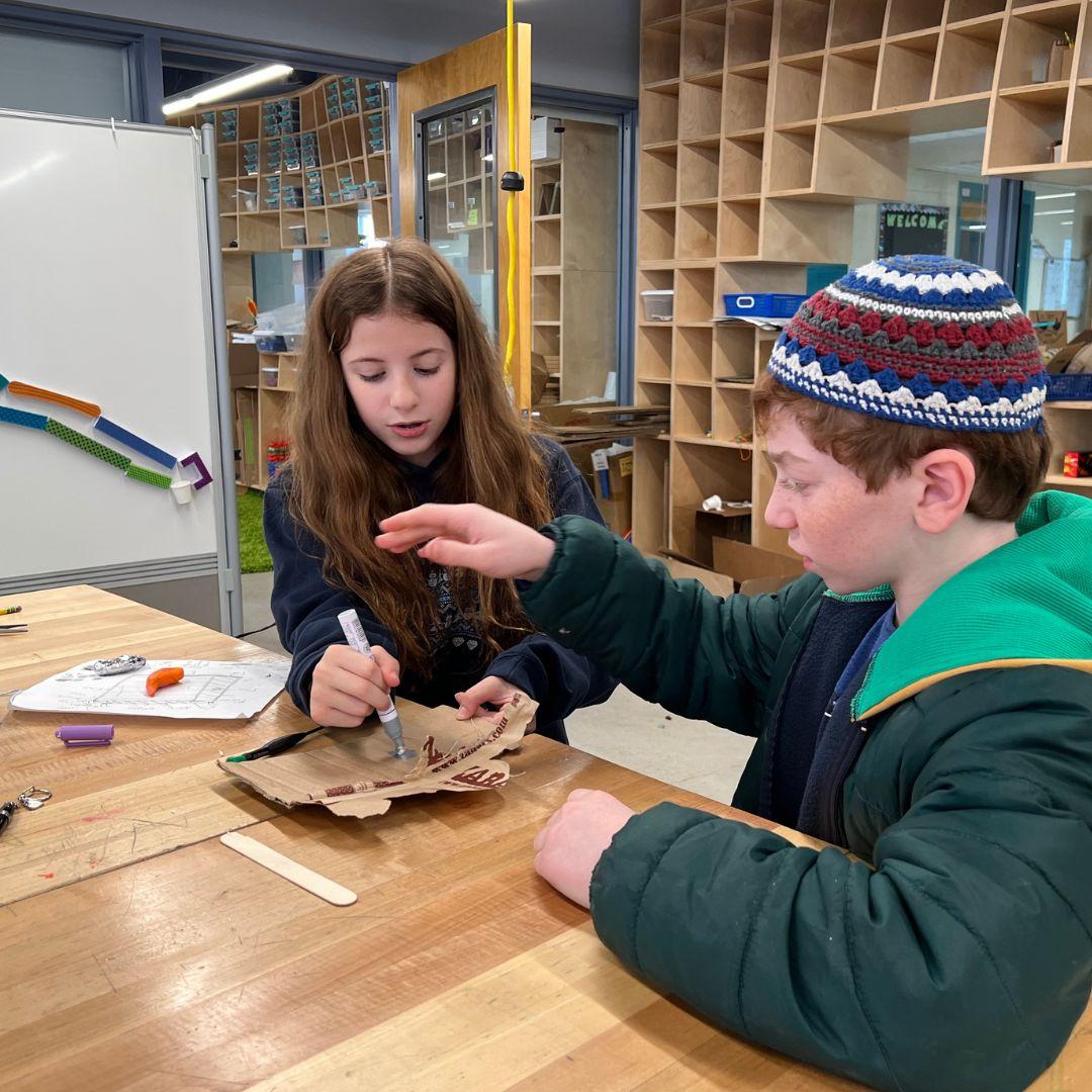 Two Seventh Grade students collaborate to design and build a model of the Mishkan to scale. | |