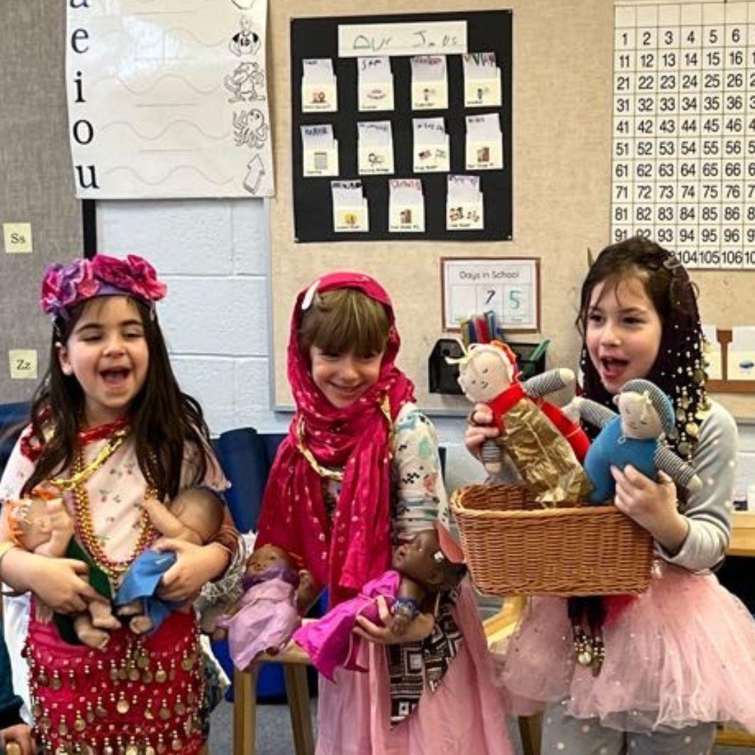 Judaic Studies Teacher Morah Shoshi shared that, “for many weeks, the students listened carefully to the story from that week’s parsha, eager to learn about how Yaakov and Esav traded a blessing for soup or about what would happen when they reunited years later." Morah Shoshi, along with Kindergarten Teachers Morah Elyse and Morah Aliza, added that "through the siyum, students become invested in and part of the Torah because they reenacted and therefore made its stories come to life. As a result, they are connected to their heritage in a kinesthetic and fun way."