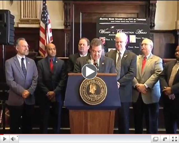 On Tuesday, Mayor Spano presented Helen Henkel, Marla Hurban, Maria Neto, Carrie Pataky and Diane L. Santavicca with the first-ever City of Yonkers Women of Distinction awards. "These women have demonstrated excellence, leadership and integrity within their community, serving as role models for successful women all across our nation," Mayor Spano said at the awards ceremony at City Hall. |