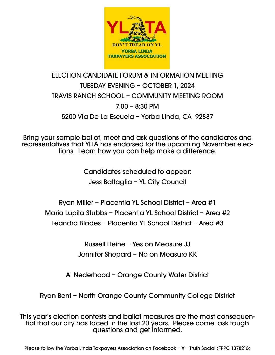 Yorba Linda Taxpayers Association (YLTA) Meeting