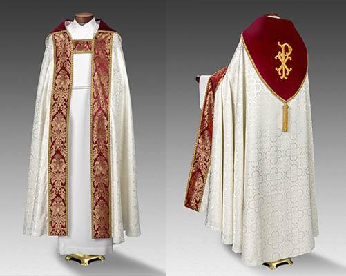 A "Cope" is a liturgical vestment, typically worn by clergy for processions, blessings, and other liturgical functions. Essentially it is a full-length cloak worn over vestments that is removed before the beginning of a Eucharist service. How appropriate it is given our patron saint gave away half of his cloak in service to another.