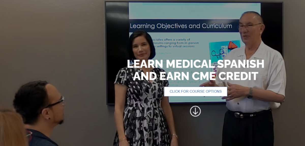 Our intensive, individually tailored conversational, CME Medical Spanish and Cultural Awareness courses ensures an engaging and interactive learning experience for all proficiency levels and medical specialties, offering straightforward grammar explanations, cultural insights, and a comprehensive overview of medical terminology.