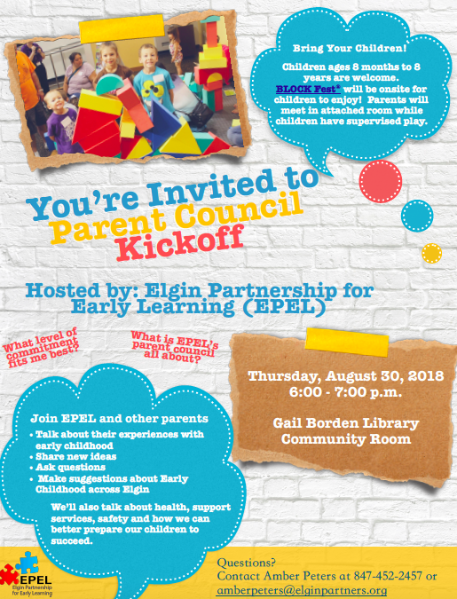 EPEL held our first Parent Council interest meeting at Gail Borden library in August. We look forward to growing this partnership as parents are a very important piece to our organization and a strong voice in our community. Research shows that there is a direct correlation between parents who are engaged in their child's education and success in school.