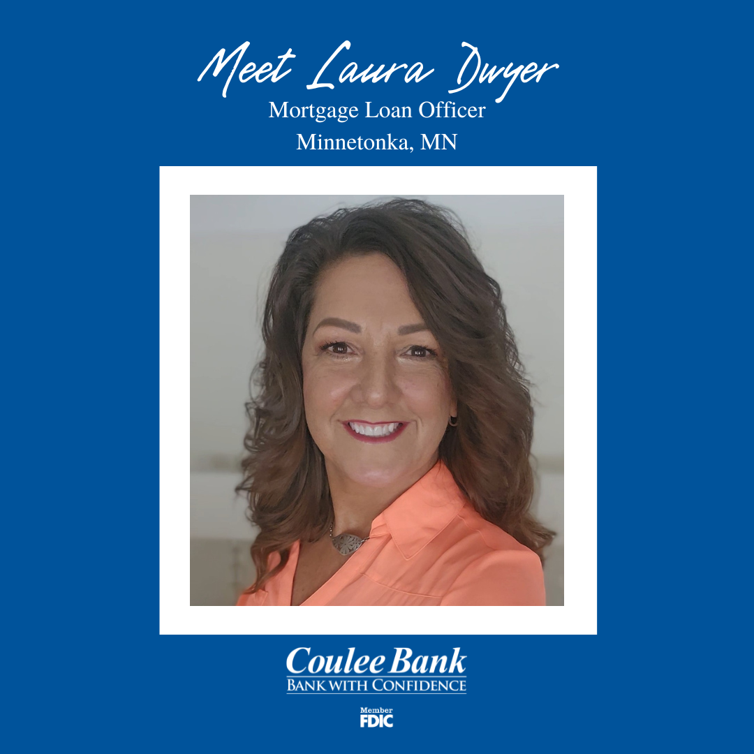 Introducing Laura Dwyer, Mortgage Loan Officer working in our Minnetonka branch. Dwyer comes to us with over 20 years of experience in the mortgage industry and she looks forward to collaborating with like-minded individuals here at Coulee Bank. As a dedicated Mortgage Loan Officer, she specializes in helping clients navigate the home lending process with ease.