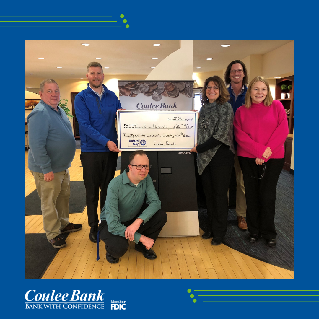 Coulee Bank commits to workplace excellence and nurtures growth and support within the communities we consider home. We volunteer, empowered by the belief that we can create positive change! You can be confident in our efforts to support the community. | |