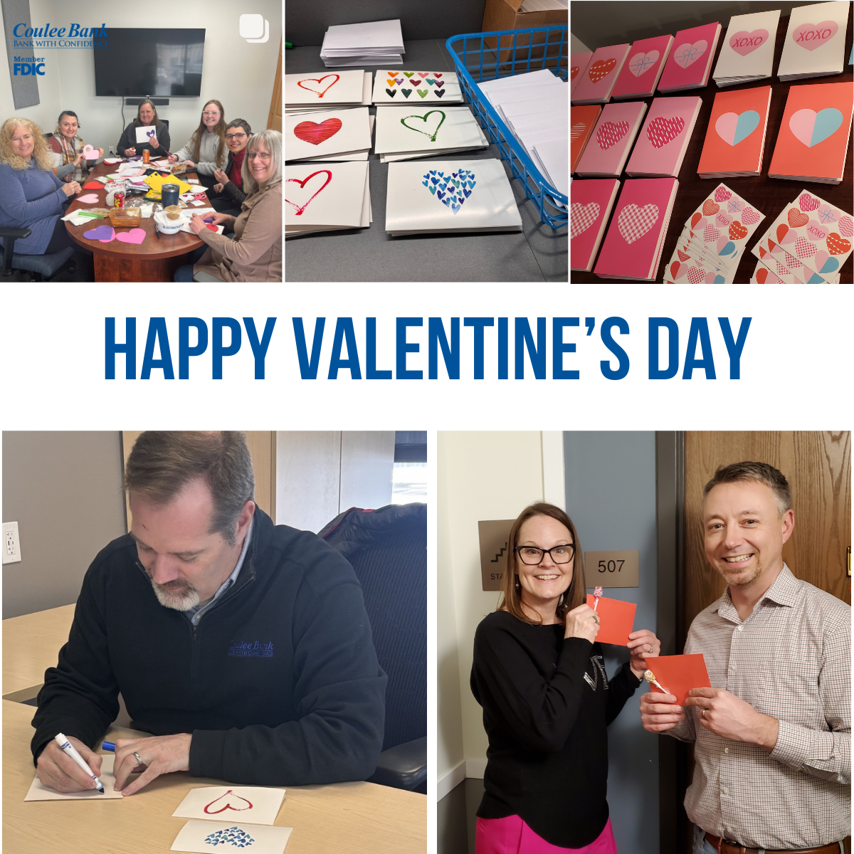 Spreadin' the Love! Last month, our amazing Coulee Bank team came together to craft heartfelt Valentine's Day cards for senior citizens in our communities! Many of our employees had the joy of hand-delivering these special notes, and oh, the smiles we received were priceless! | |