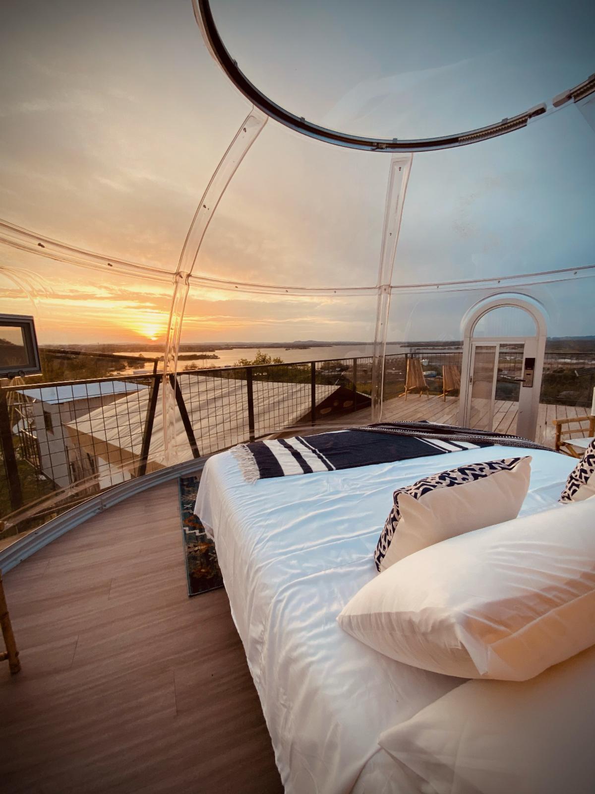 At the very top of the Glampominium, 30-feet in the air, is the StarDome Suite. The StarDome is a sixteen-foot clear dome to sleep under the stars at night. Hozhoni is located in a “dark sky community” – adding to exceptional star gazing from your bed – the StarDome is a true Five Billion Star accommodation!