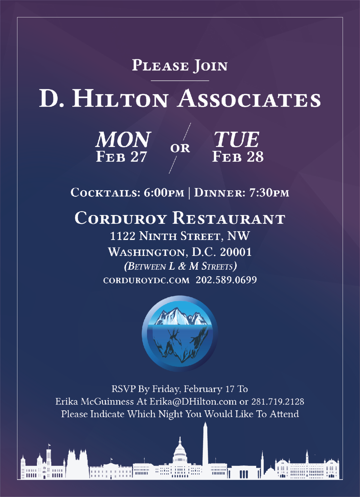 Please Join Us for Dinner in D.C.