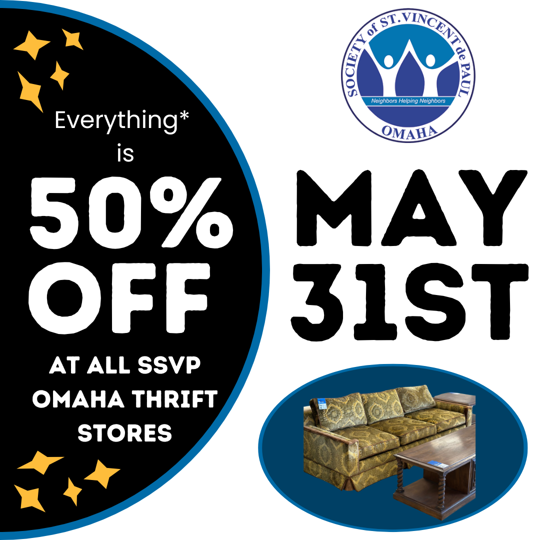 P.S. - The SSVP Omaha stores will be open on Memorial Day, Monday, May 26th, this year from 11am-4pm! Enjoy some fun thrifting on your Monday!