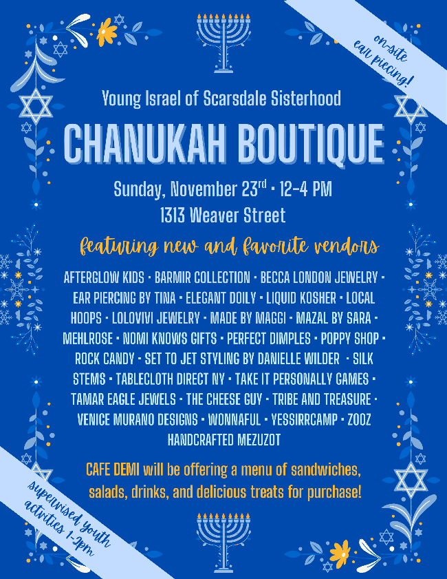 | Click above to access timely announcements and messages from the Rabbis and Shul leadership | Click above to learn the weekly Parsha with the YIS Community! | Connects our community's teens and parents looking for babysitters. Parents post in the group with their babysitting needs, and teens can respond that they are available. | | |