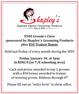 Welcome to your 2015 WEF Newsletter for week four. In this weekly newsletter, you'll find a variety of information, horse show updates, competition wrap-ups, sponsor offers, and more!