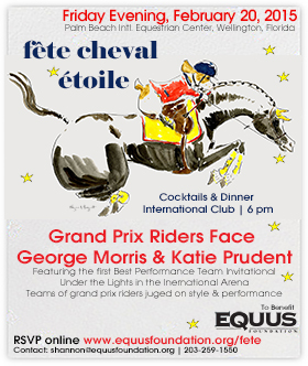 RSVP Now for the February 20th EQUUS Foundation Fete Cheval Etoile featuring the 1st Best Performance Team Invitational. New this year, George H. Morris and Katie Prudent will judge teams of grand prix riders on their style and performance as they compete over a 1.35 jumper course in the International Arena at the EQUUS Foundation Fete Cheval Etoile on Friday, February 20, 2015. 100% of event proceeds benefit horse welfare. Join us in the International Club at 6 pm to enjoy this first of its kind competition and give back to our equine partners! What's better than that? RSVP at www.equusfoundation.org/fete.