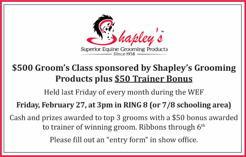 Welcome to your 2015 WEF Newsletter for week eight. In this weekly newsletter, you'll find a variety of information, horse show updates, competition wrap-ups, sponsor offers, and more!