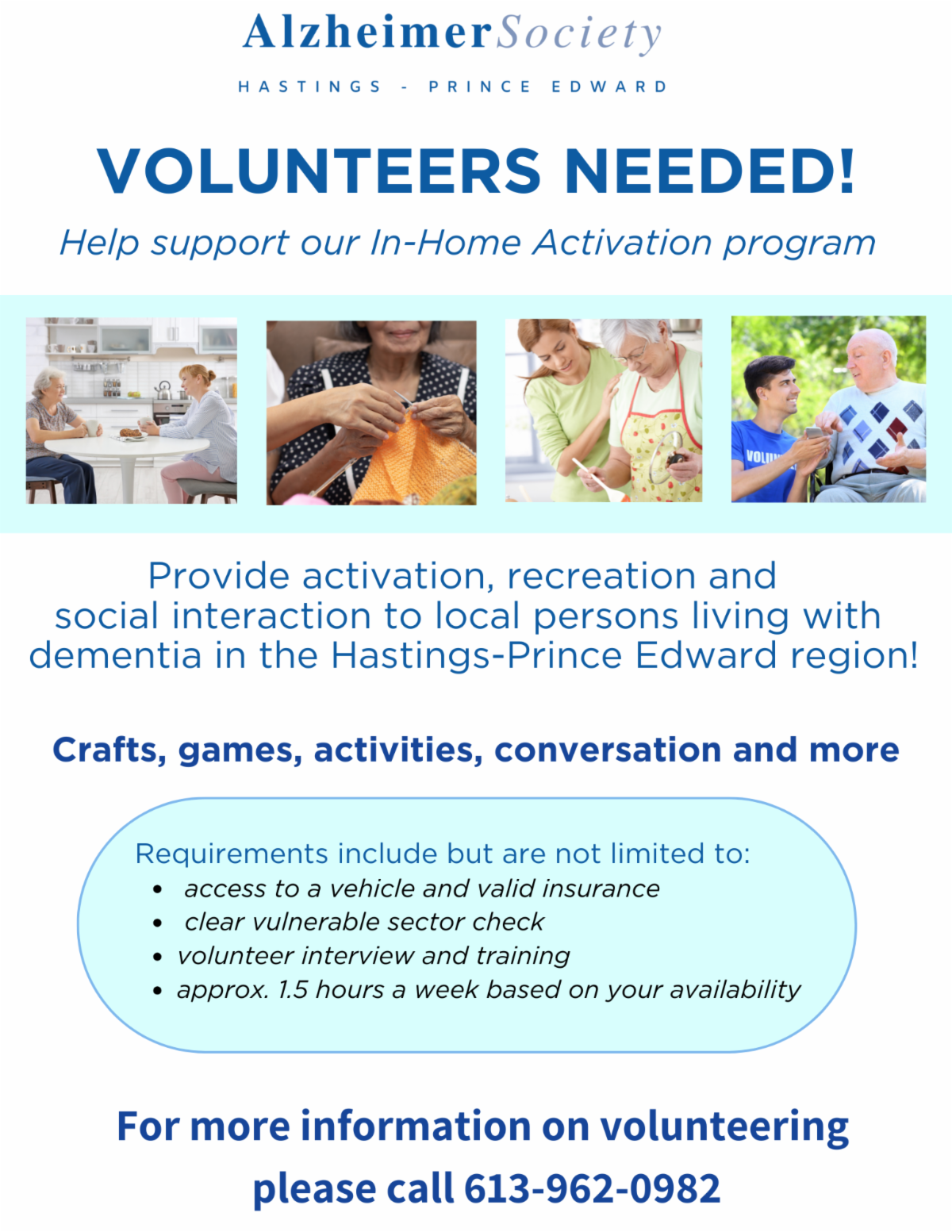 To volunteer, donate, or learn more please contact Fund Development Coordinator Trisha Clancy at trisha.clancy@alzheimerhpe.ca.