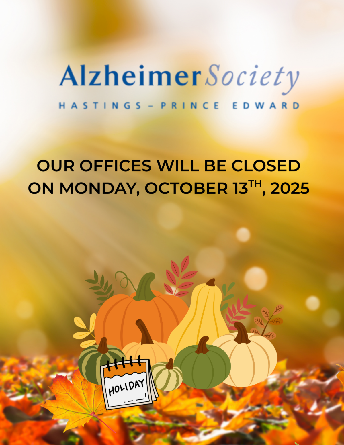 Offices will be closed on Monday, October 13th. All offices will re-open on Tuesday, October 14th at 8:30 am! We hope you enjoy a safe and relaxing Thanksgiving weekend!