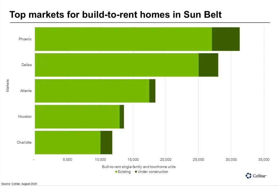 While development has accelerated in certain Sun Belt markets, national deliveries are still relatively modest compared to the depth of demand. Approximately 39,000 units were completed last year, with around 90,000 in the pipeline. Most of this is spread across high-growth metros where job and population growth remain robust. Importantly, unlike past cycles of overbuilding, today’s BTR growth is far more targeted, with a focus on building at scale in communities rather than scattered one-off homes.