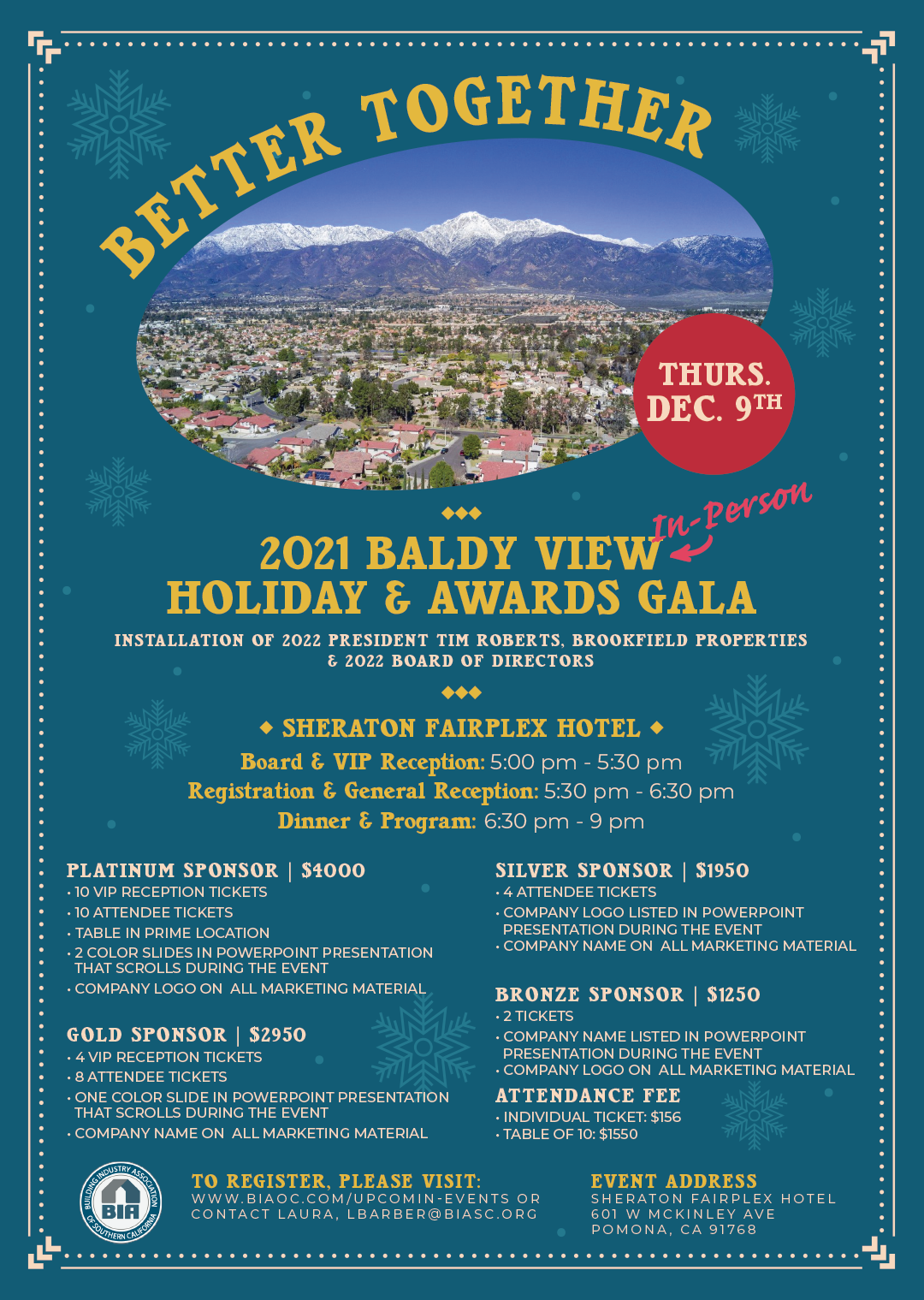 You're invited to BIA Baldy View Chapter's Holiday & Awards Gala - In Person! We look forward to gathering in celebration of the year-end, and we hope to see you there!