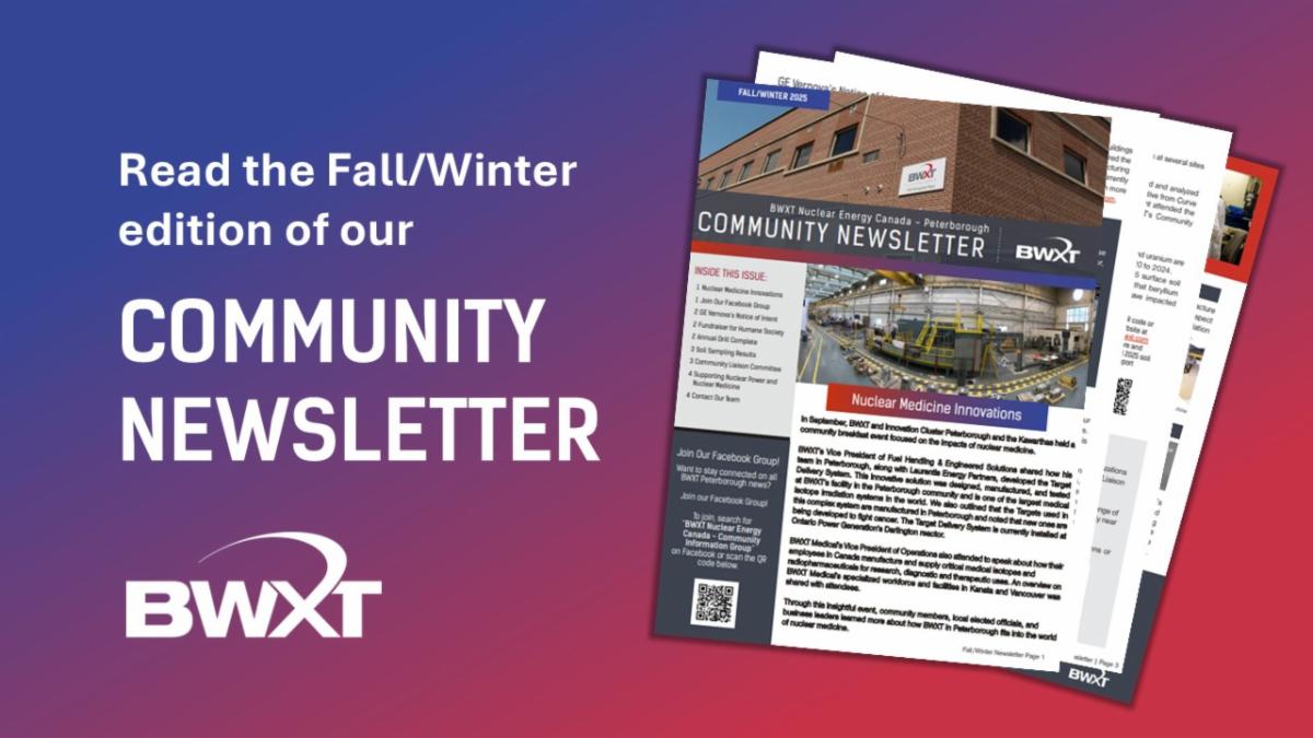 The Canadian Nuclear Safety Commission recently shared their notice of a public meeting in May 2026. During the meeting, BWXT will provide an update on the first five years of our licence. More information can be found below.