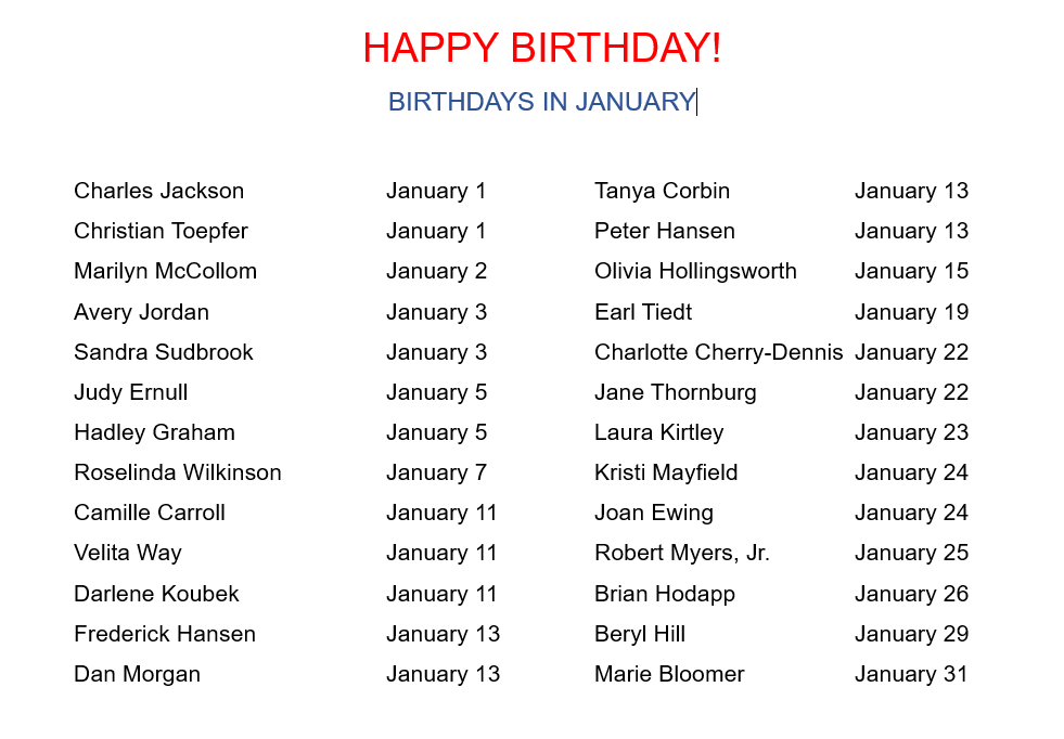 Thursday, Jan. 29th